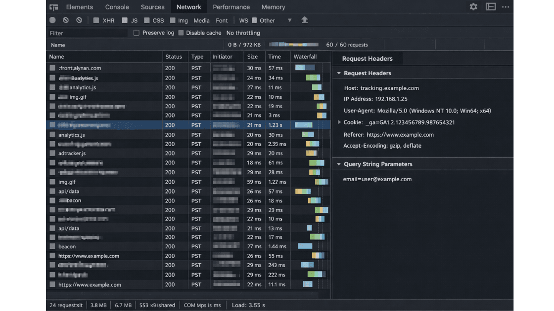 - Referrer URLs revealing user behavior